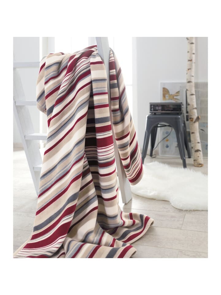 Жаккардовое одеяло Erwin Müller «Форио». Современный полосатый рисунок создает красивую игру цветов и домашнюю атмосферу. Наслаждайтесь прекрасными часами объятий в мягкой, пушистой смеси материалов. Он приятен для кожи, дышит и регулирует температуру. Аксессуар для дома гармонично завершается окантовкой из велюровой ленты.