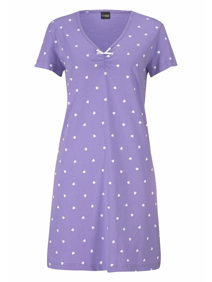 Отличная ночная рубашка от Vivance Dreams в двойной упаковке! С V-образным вырезом, небольшими рюшами и милым декоративным бантиком. Вырез и короткие рукава с красивой окантовкой. Повсюду напечатан милый сердечный принт. Изготовлен из мягкого одинарного трикотажа из 100% хлопка.