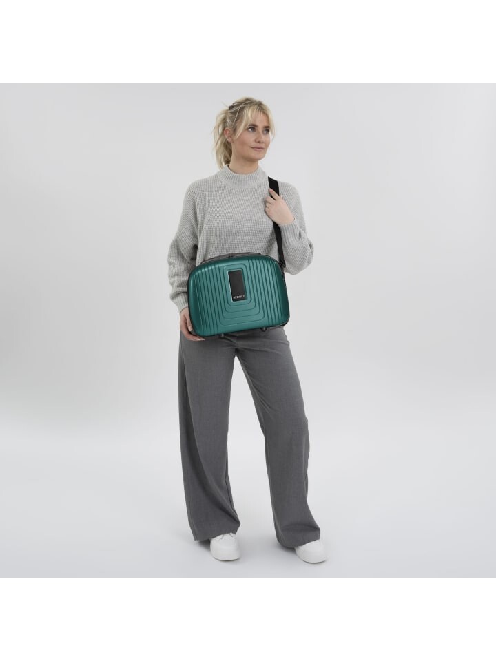 Этот косметичка от Redolz станет идеальным дополнением к вашему дорожному набору. Внутри футляра достаточно места для хранения всех необходимых средств по уходу. Благодаря двум просторным отделениям на молнии половинки чемодана можно использовать оптимально, а дополнительные внутренние карманы и еще одно отделение на молнии посередине предлагают очень хорошие возможности организации. Комбинация застежки-липучки и кнопки позволяет открывать косметичку частично или полностью по мере необходимости. С помощью язычка сзади чемодан можно прикрепить к раме тележки. Но если вы хотите носить его через плечо, в комплект входит плечевой ремень.