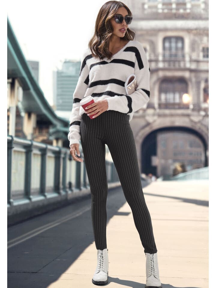 С тонкими полосками: леггинсы до щиколотки от Lascana. Узкий пояс. Два задних кармана. Благодаря эластичному материалу сидит как вторая кожа.
