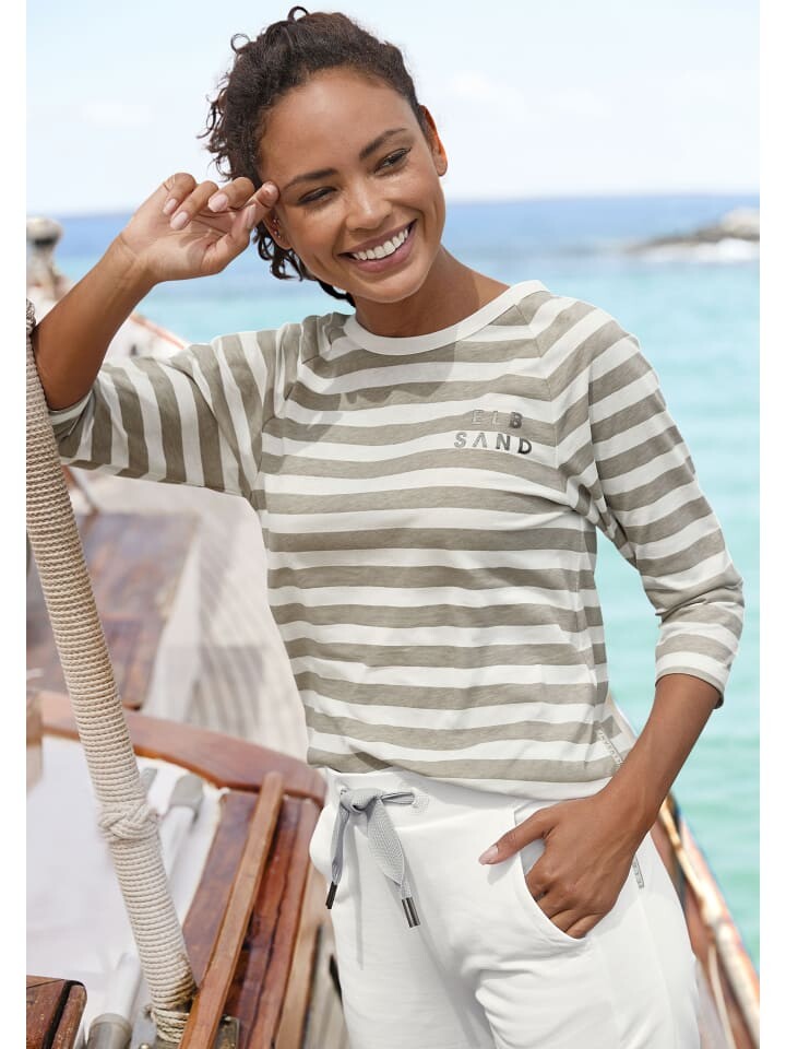 Футболка ELBSAND, цвет creme-taupe gestreift