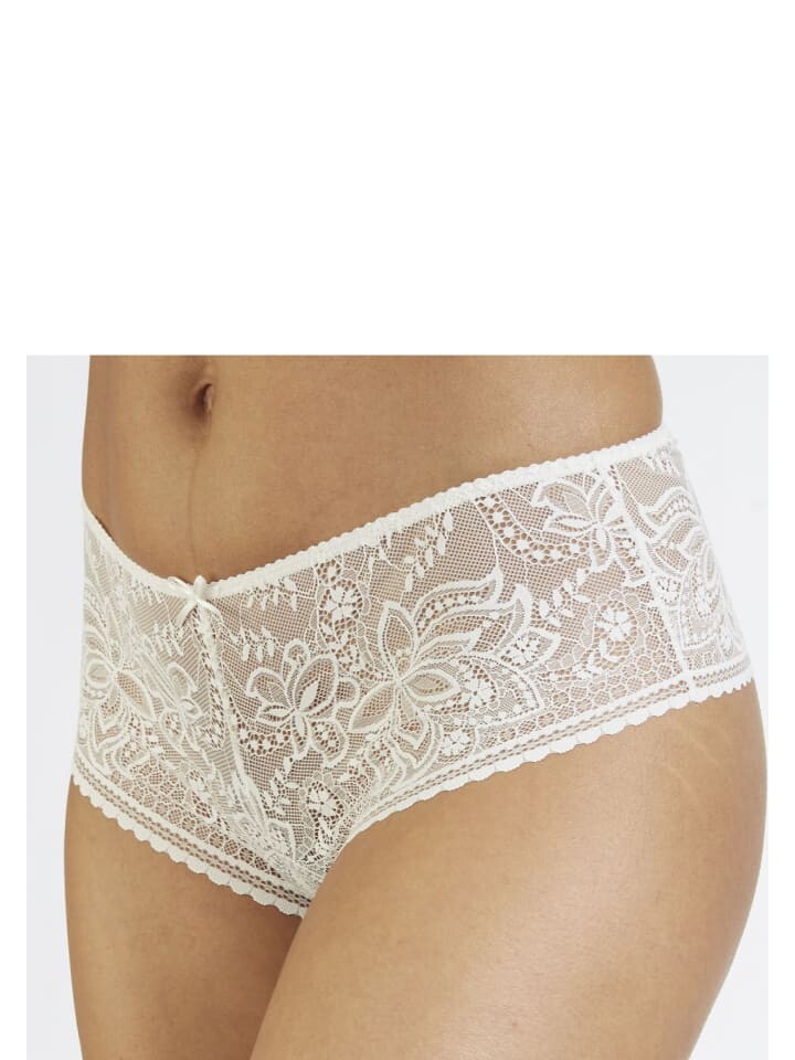 Женственные трусики облегающего кроя. Все вокруг выполнено из нежного, слегка прозрачного кружева с цветочным узором. С изящным декоративным бантиком посередине спереди. Со встроенной хлопковой ластовицей. Создано с любовью и страстью в Гамбурге. Внешний материал: 88% полиамид, 12% эластан.