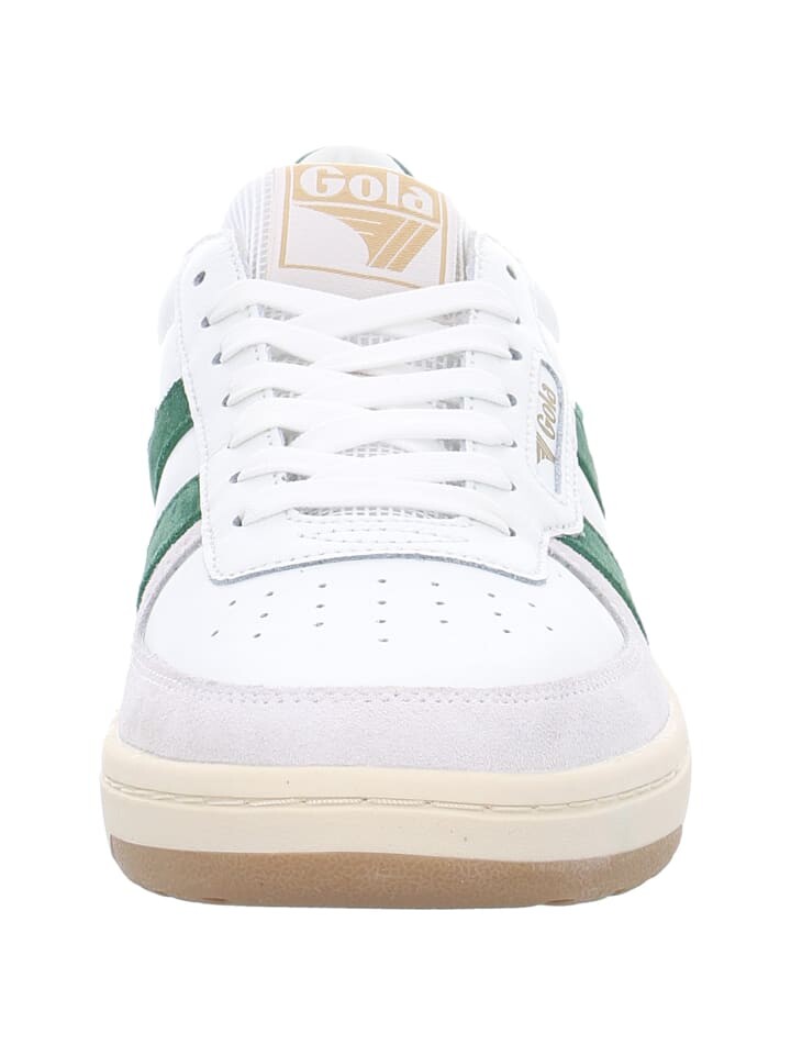 Hawk от Gola — это стильные кожаные кроссовки, которые являются универсальными и станут отличным дополнением к любой коллекции гардероба. Кроссовки белого цвета имеют фирменные полосы Gola по бокам, придающие им особый вид. Привлекательные цветные полосы сразу привлекают внимание и придают обуви особый шарм. Для обеспечения дополнительной прочности области пальцев усилены замшей. Нескользящая резиновая подошва обеспечивает оптимальное сцепление и удобную посадку при беге. Благодаря классической шнуровке обувь можно индивидуально подогнать под ногу. Женская модель Hawk — это нестареющая классика, которая сопровождает вас во время любого досуга и повседневной жизни и всегда гарантирует стильный внешний вид.