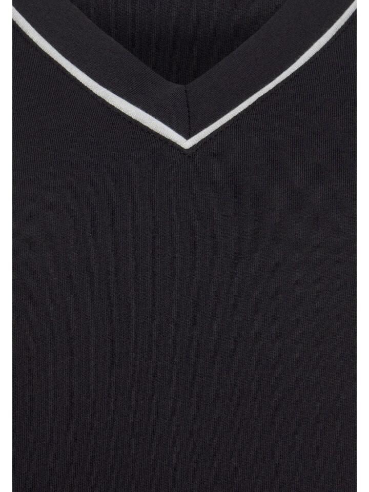 - Рубашка с длинными рукавами и контрастной окантовкой на V-образном вырезе