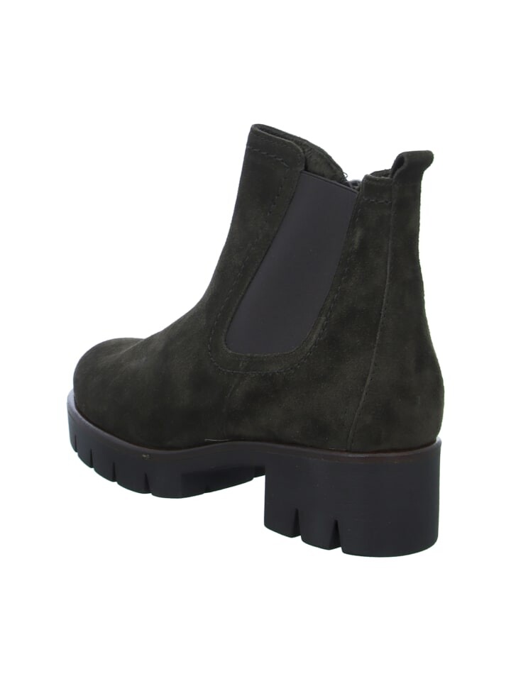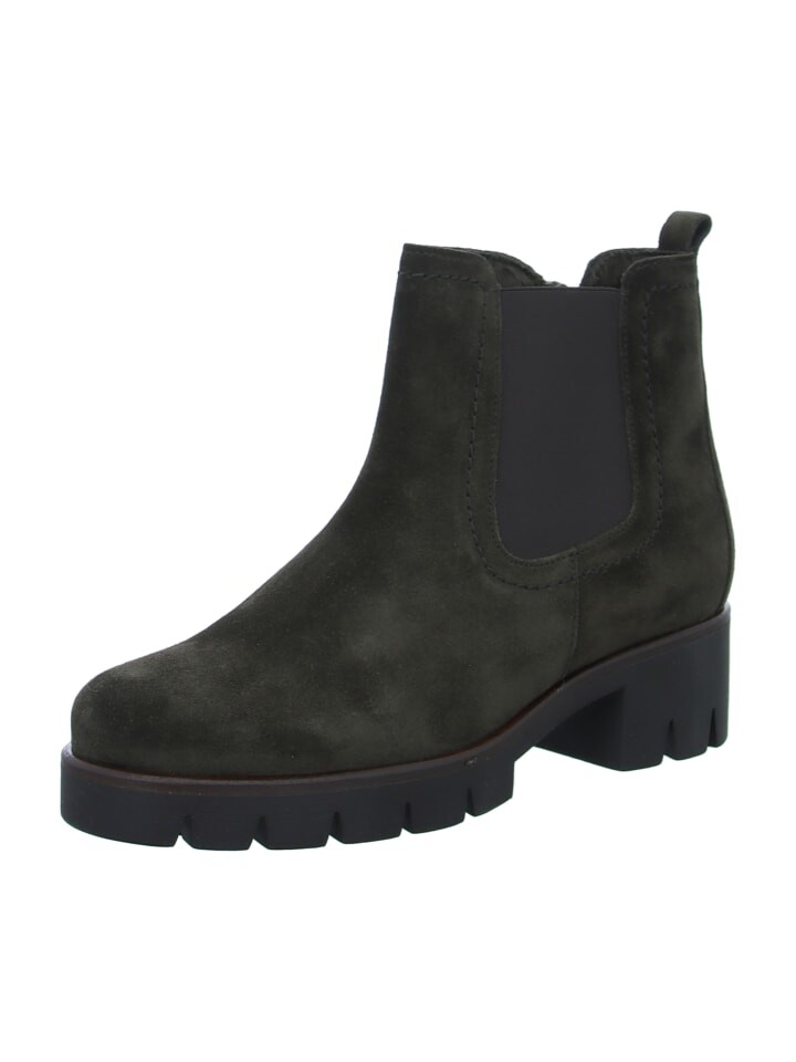 Ботинки челси от Gabor. Кожаный верх идеально подходит для универсальных комбинаций нарядов. Внутренний материал из текстиля и прочная резиновая подошва завершают ботильоны.