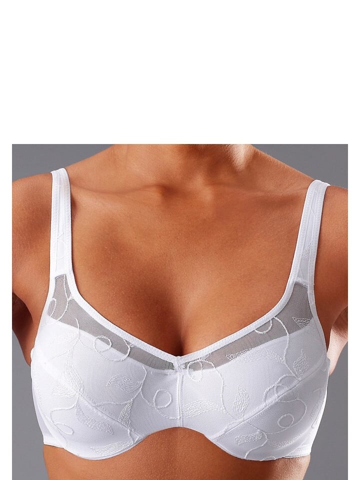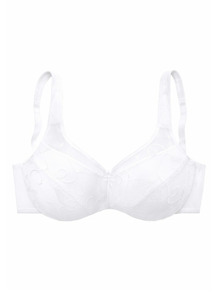 PETITE FLEUR: Бюстгальтер-минимайзер (без подкладки), в упаковке 2 шт., на косточках. С вышивкой кружевом. За счет специального кроя бюст кажется визуально меньше. Широкие лямки для удобной посадки. Регулируемые бретели и застежка сзади. Изготовлен из 90% полиамида, 10% эластана. Бюстгальтеры не подходят для сушки в сушильной машине, так как регуляторы и кольца повреждаются под действием тепла и ломаются.