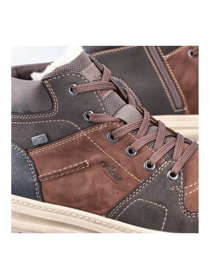 Навсегда единственные: мужские высокие кроссовки Rieker являются изюминкой коллекции и привносят дух юбилея в ваш обувной шкаф. Утонченное сочетание шнуровки и молнии позволяет легко надевать и снимать куртку. Нескользящая подошва обеспечивает надежный захват, а очень мягкая стелька обеспечивает особенно удобную посадку. Благодаря дополнительной ширине H вашим ногам будет достаточно места, чтобы чувствовать себя комфортно даже при длительном ношении. Теплая, уютная подкладка из натуральной шерсти и проверенная технология RiekerTEX делают эти кроссовки идеальным спутником в любую погоду. Абсолютный комфорт при ношении!