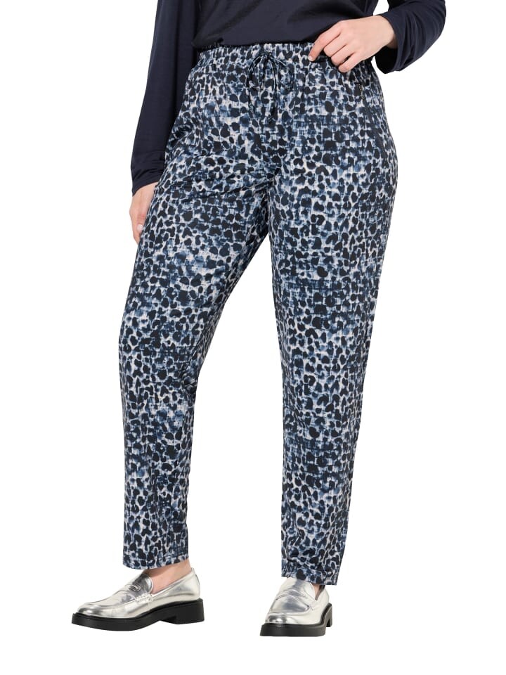 Брюки из джерси удобного кроя с леопардовым принтом нового цвета. Эластичный пояс с завязками, карманы на молнии. Внешний материал: 80 % полиамид, 20 % эластан.