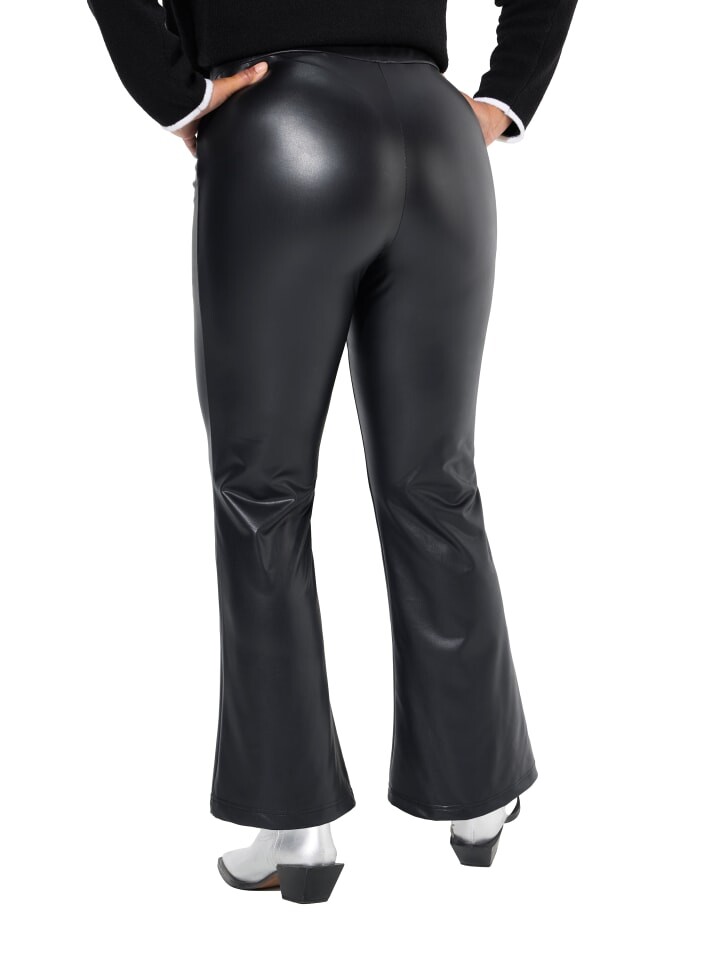 Леггинсы скинни, имитирующие кожу, с расклешенным низом, изготовлены из мягкой искусственной кожи. Эластичный пояс.