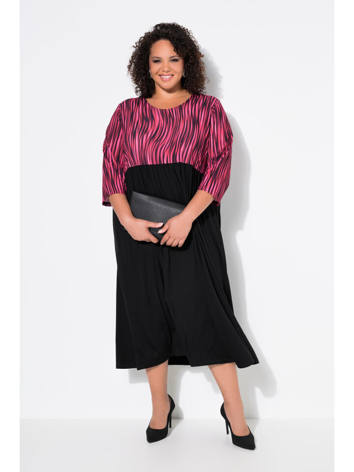 Платье из джерси, А-силуэта, с принтом по всей поверхности. Удобная посадка, круглый вырез горловины и эластичный ампирный шов. Рукава 3/4. Карманы в боковых швах.