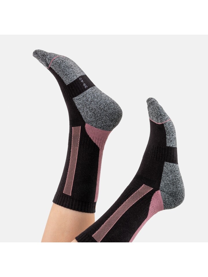 Откройте для себя Gerlinde — наши походные носки для женщин, изготовленные из смеси хлопка, полиамида с эластаном. Никаких волдырей, пота и точек давления благодаря мягкой подошве и специальным зонам охлаждения. Идеально подходит для походов, скандинавской ходьбы и прогулок - летом и зимой. Идеальный подарок для любителей активного отдыха.