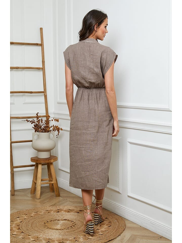 Длинное платье La Compagnie Du Lin Leinen, серо-коричневый