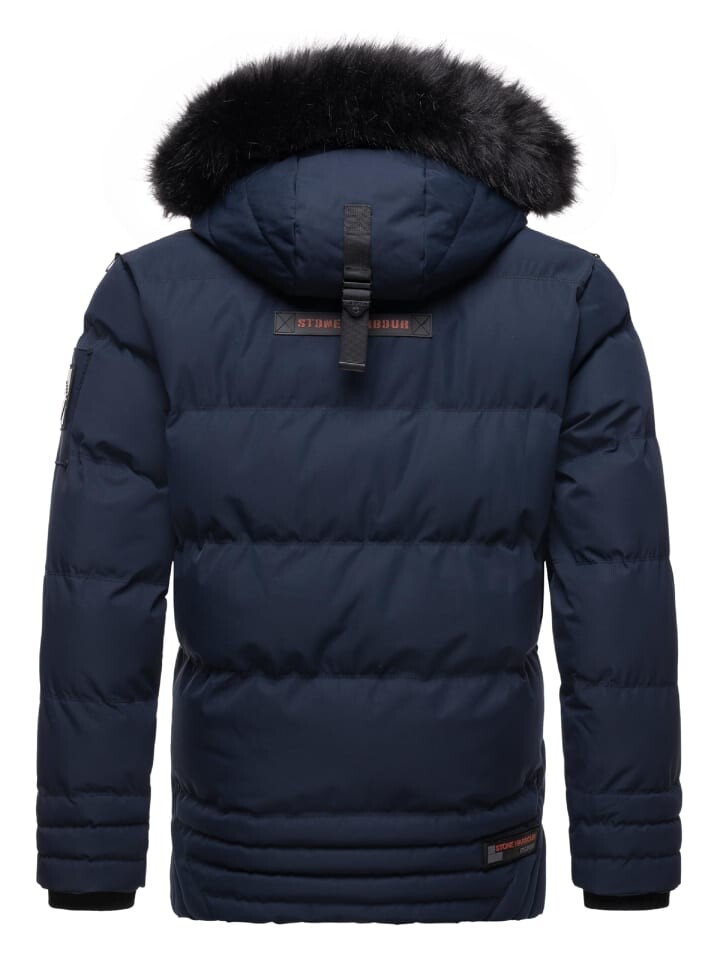 ВИД: Современная мужская зимняя куртка с модной стежкой и съемным искусственным мехом от премиального лейбла STONE HARBOR, безошибочно узнаваемый сложный металлический логотип на рукаве. МАТЕРИАЛ: Игривая стеганая зимняя куртка из нескользящего внешнего материала (ветро- и водоотталкивающего). и частично на подкладке из уютного флиса, несмотря на то, что толстая и теплая подкладка делает куртку приятно удобной в носке. ПОСАДКА: верхняя куртка большой длины до бедер, удлинённая сзади, широкие плечи, прямой крой и боковые разрезы позволяют куртка большая свобода движений, капюшон можно регулировать по желанию. Ширина регулируется
