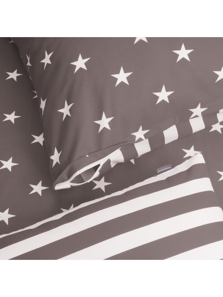 Постельное белье Schiesser set Sterne Feinbiber 2 tlg, серо-коричневый