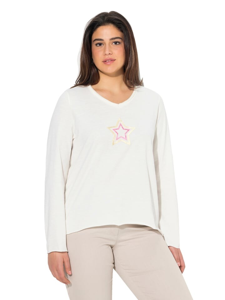 Футболка А-силуэта из мягкого хлопкового трикотажа с яркой звездой и закругленными краями. Округленный V-образный вырез, длинные рукава, слегка закругленный низ. Внешний материал: 100% хлопок.