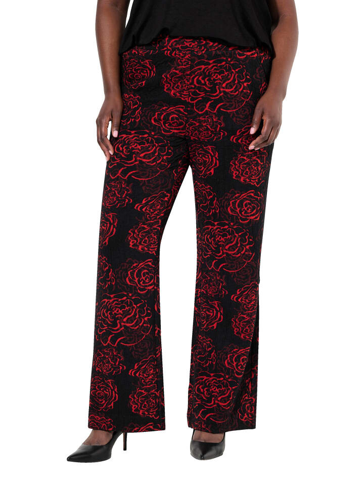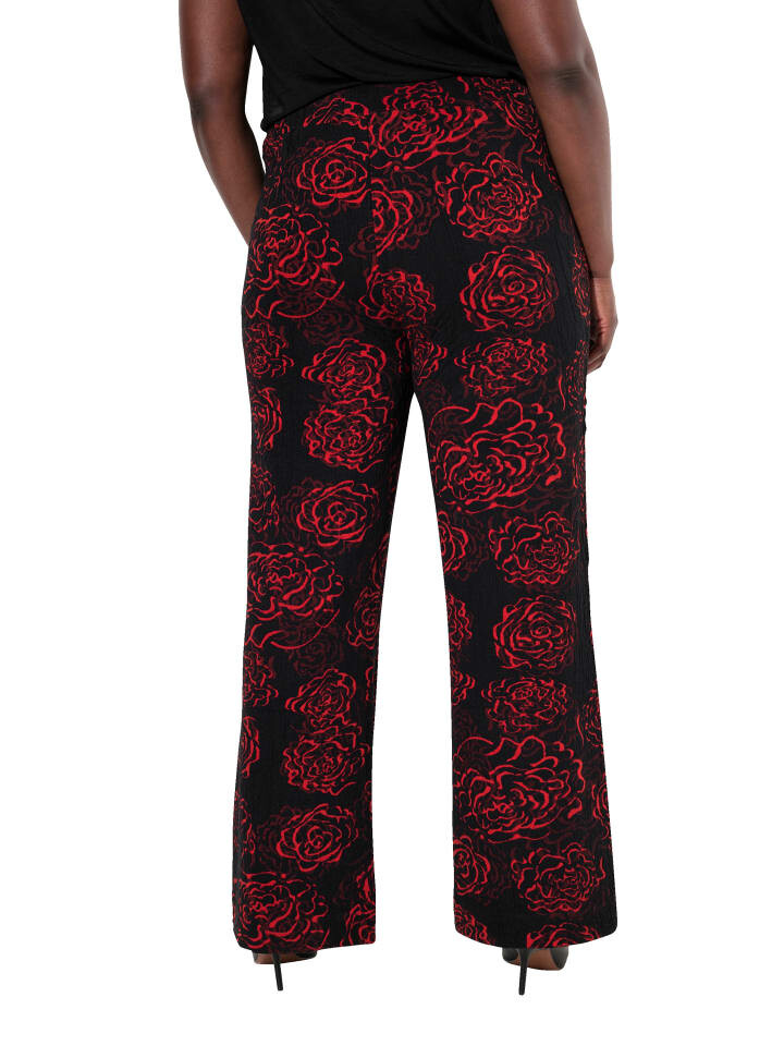 Брюки из жаккардового трикотажа, прямые, широкие, из изысканного жаккардового трикотажа с цветочным узором. Очень универсальный, с эластичным поясом и боковыми карманами.