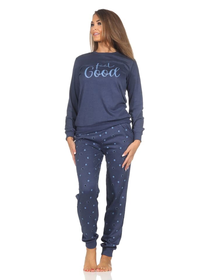 Пижама NORMANN Langarm Kuschel Interlock Langarm Sterne Optik, цвет blau-mel.