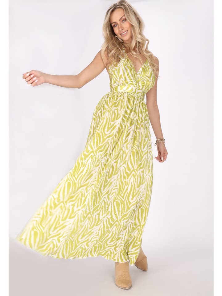 Атласное платье-макси со складками – потрясающая модель, излучающая элегантность и утонченность. Платье с вырезом в форме сердца и вырезом на груди идеально подходит для официальных или полуофициальных мероприятий. Зауженная талия создает развевающийся силуэт, а струящееся платье добавляет изящности. Завязка на шее создает шикарный и стильный образ, который обязательно привлечет внимание. На платьях изображен интересный рисунок животных. Это платье идеально подходит для летних мероприятий или вечеринок.