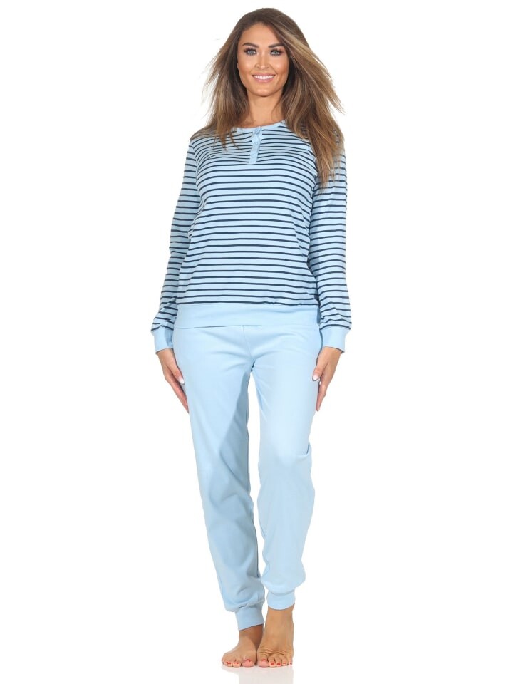 Пижама NORMANN Interlock langarm Bündchen Streifenoptik, голубой