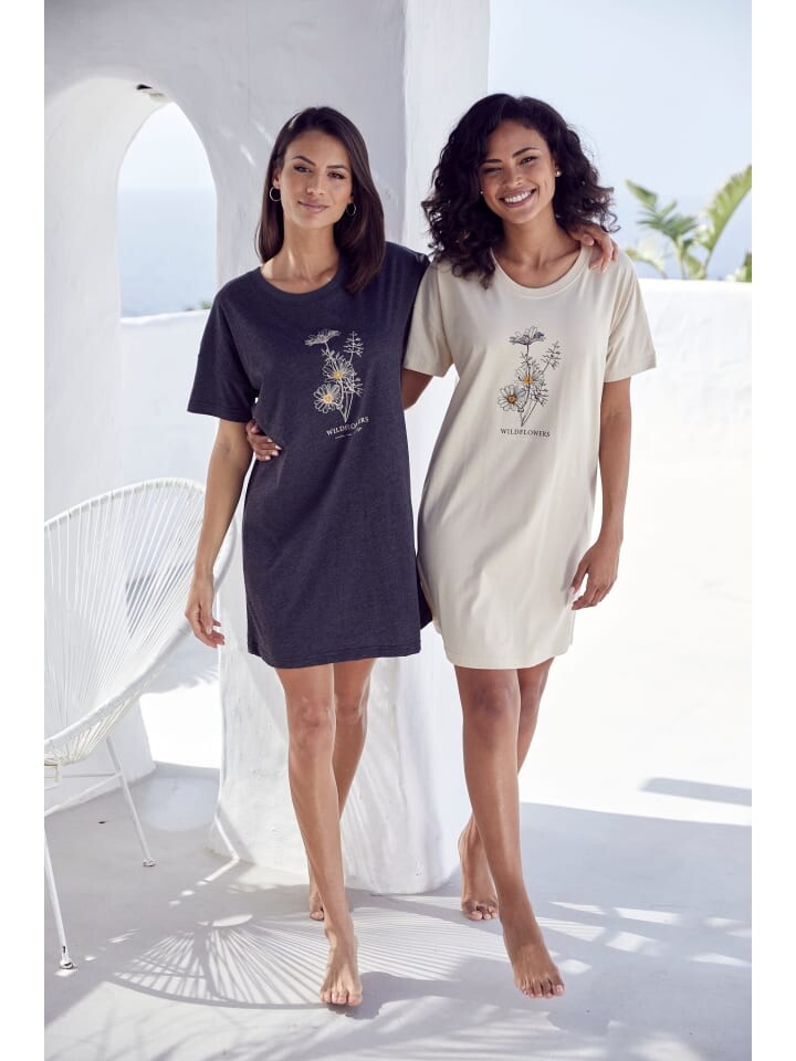 Удобная большая рубашка от Vivance Dreams в упаковке 2 штуки. С принтом спереди. Заниженная линия плеча и короткие рукава. Круглый вырез. Мягкий качественный одинарный трикотаж.