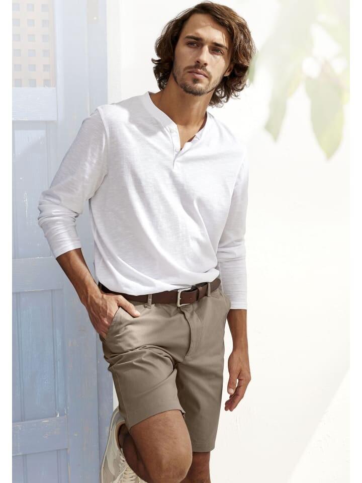 Классические мужские шорты-чиносы модели HIS Timeless с прямыми штанинами. Нормальная высота талии и эластичный пояс. Удобный крой благодаря регулярной посадке. Идеальная посадка благодаря эластичному хлопку. Без пояса.