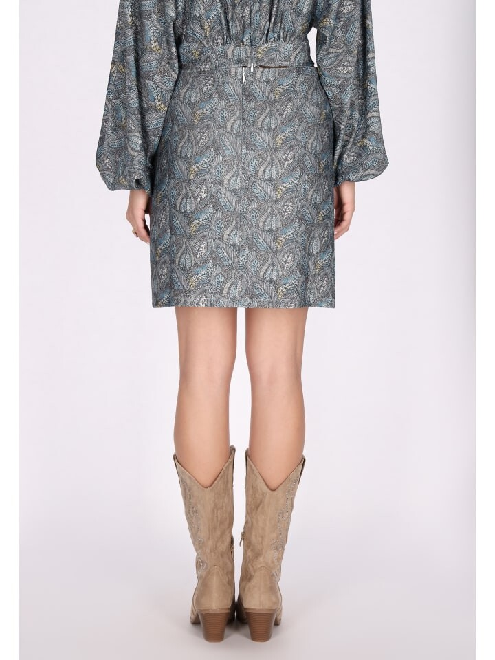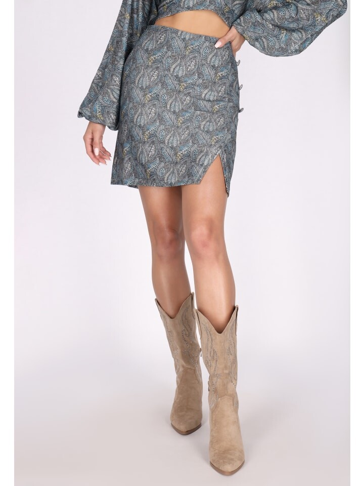 Подчеркните свой стиль бохо-шик с помощью этой блестящей мини-юбки. Эта элегантная юбка из ткани с замысловатым цветочным узором излучает современный стиль. Асимметричный подол юбки придает ей уникальность, а украшенные пуговицы придают ей декоративный вид. Эта юбка-карандаш с разрезом, идеально подходящая для прогулок и мероприятий, обязательно произведет впечатление в вашем гардеробе.