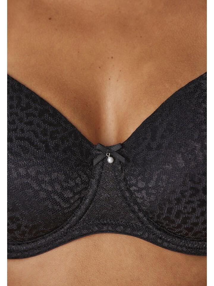 Женственный бюстгальтер-минимайзер из блестящего жаккардового материала (без набивки). Очень удобные, плоские, мягкие лямки. Специальный крой визуально уменьшает бюст. Индивидуально регулируемые бретели и застежка сзади. Изготовлен из 88% полиамида, 12% эластана