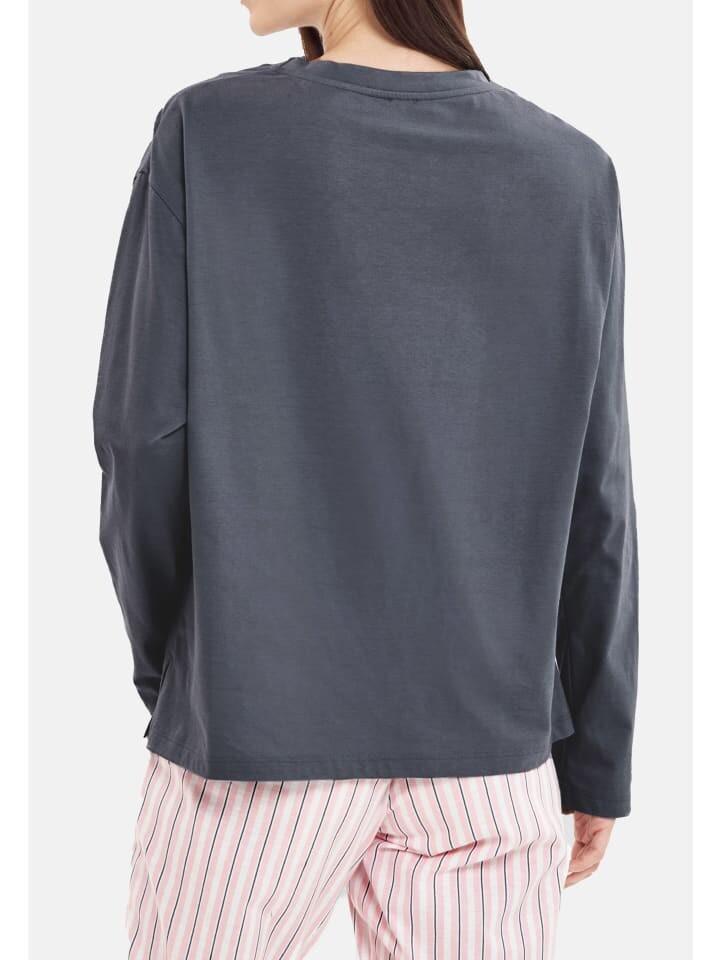 Пижамный топ с длинными рукавами, круглым вырезом с отделкой и непринужденной посадкой. Прямой крой и вырезы на рукавах обеспечивают дополнительный комфорт, а небольшие боковые разрезы на подоле создают комфортный и непринужденный образ.