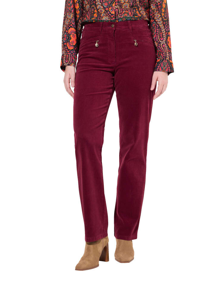 Мони вельветовые брюки. Приятная эластичность, два наклонных кармана на молнии спереди. Частично эластичный пояс с петлями для ремня, пуговицей и молнией. Внешний материал: 98 % хлопок, 2 % эластан.