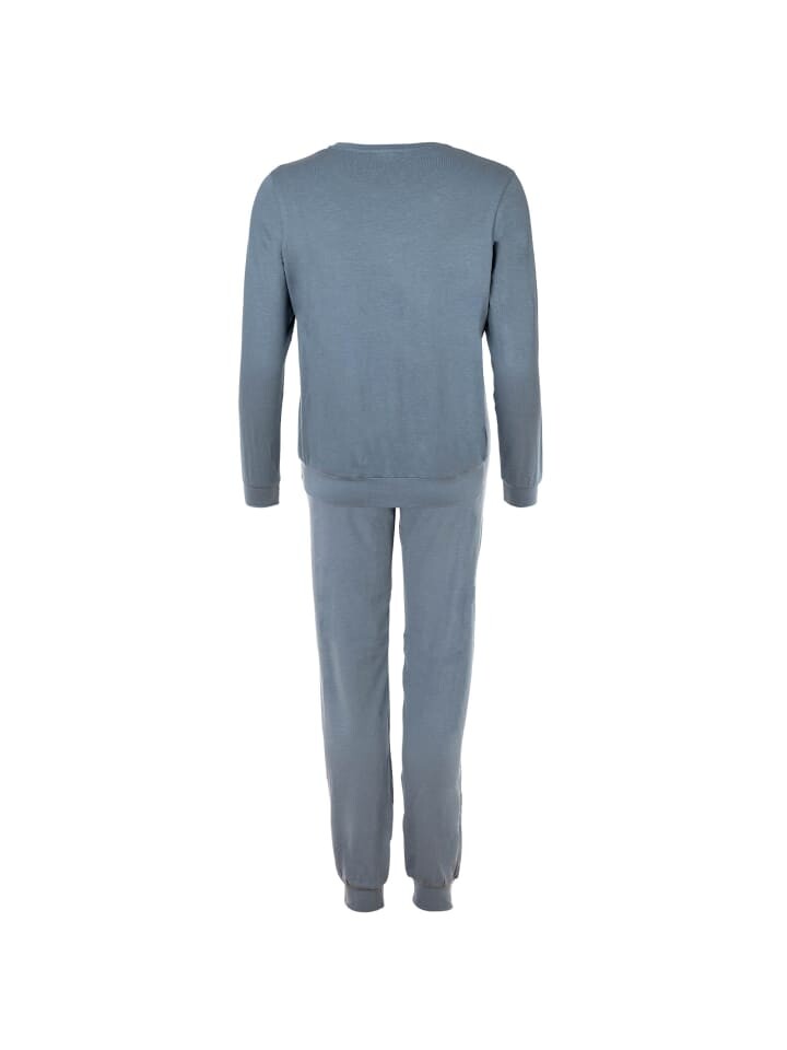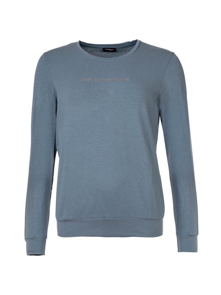 Пижамный комплект от бренда EMPORIO ARMANI. Изготовлен из хлопкового трикотажа стрейч. Состоит из рубашки с длинными рукавами и круглым вырезом и длинных брюк с манжетами.