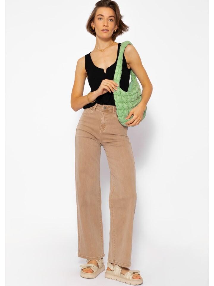 Этот стильный топ впечатляет элегантным кроем и тонкой ребристой структурой, которая придает верху нежную текстуру. Модель имеет двухслойную тканевую отделку спереди, гарантирующую устойчивость и комфорт. Изюминкой является широкий круглый вырез с небольшим изящным V-образным вырезом. В изящную V-образную деталь встроена проволока, обеспечивающая элегантную посадку. Универсальная базовая модель, которая подойдет как для повседневного, так и для нарядного случая. Сочетайте его с джинсами, юбками или шортами, чтобы создать успешный образ.