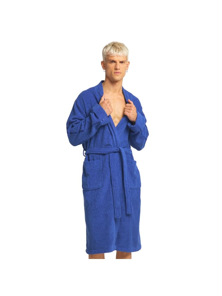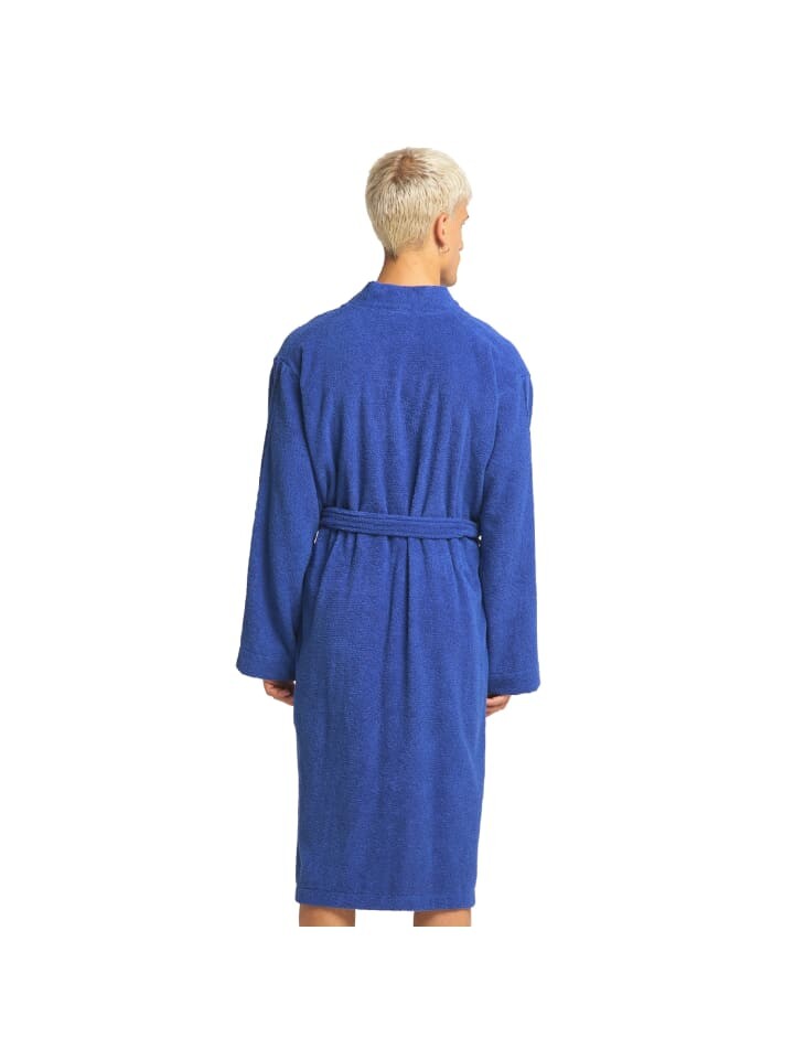 Спортивный халат в стиле кимоно - 100% чистый хлопок - приятное качество махровой ткани - свободный крой - длина до колена - 2 практичных боковых кармана - вышивка логотипа на груди - бренд надписи на обоих рукавах - на поясе, адаптированном к цвету - можно стирать в машине при 40 градусах, можно сушить в барабане - проверено на наличие вредных веществ и произведено экологически безопасным способом