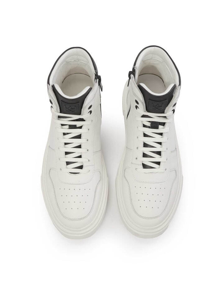 Мужские кроссовки из натуральной кожи кремового цвета – это стильная и универсальная обувь. Высокая голенища обеспечивает дополнительную поддержку лодыжки, что важно для комфорта, особенно при длительном ношении. Использование молнии и традиционной шнуровки не только облегчает надевание и снятие обуви, но и придает ей современный городской вид. Кремовый цвет — это тонкий, но модный выбор, который можно легко сочетать с различными цветами и стилями одежды. Представленные кроссовки идеально подходят мужчинам, которые ищут в повседневной обуви сочетание элегантности, комфорта и нотки экстравагантности.