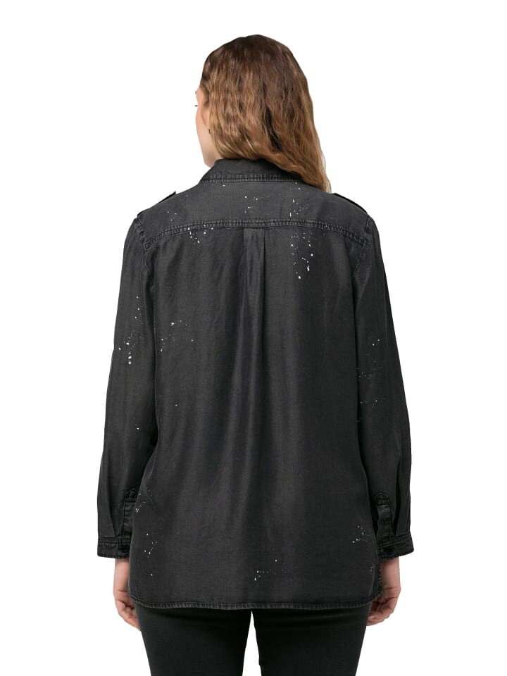 Джинсовая блузка удобного кроя, с «цветными» крапинками. Модный винтажный вид благодаря кислотной стирке. Воротник рубашки, погоны, 2 нагрудных кармана. Длинные рукава с манжетами. Боковые разрезы для еще большего комфорта.