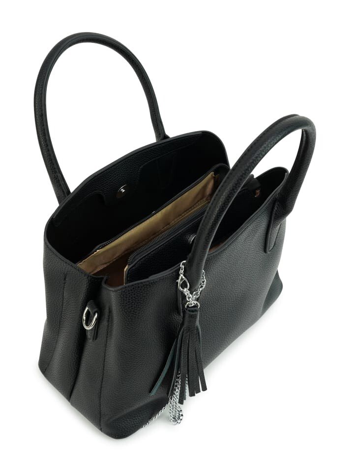 Эта сумка от бренда HARPA привлекает внимание благодаря своему классическому дизайну, неподвластному времени, выполненному из мягкой структурированной искусственной кожи. Завершает дизайн съемный кулон с элементами цепочки серебристого цвета. Основное отделение разделено на три отделения и предлагает много места для хранения вещей. Размеры сумки 28 х 21 х 11,5 см — идеальный размер. Вы также можете снять плечевой ремень и отрегулировать его длину.