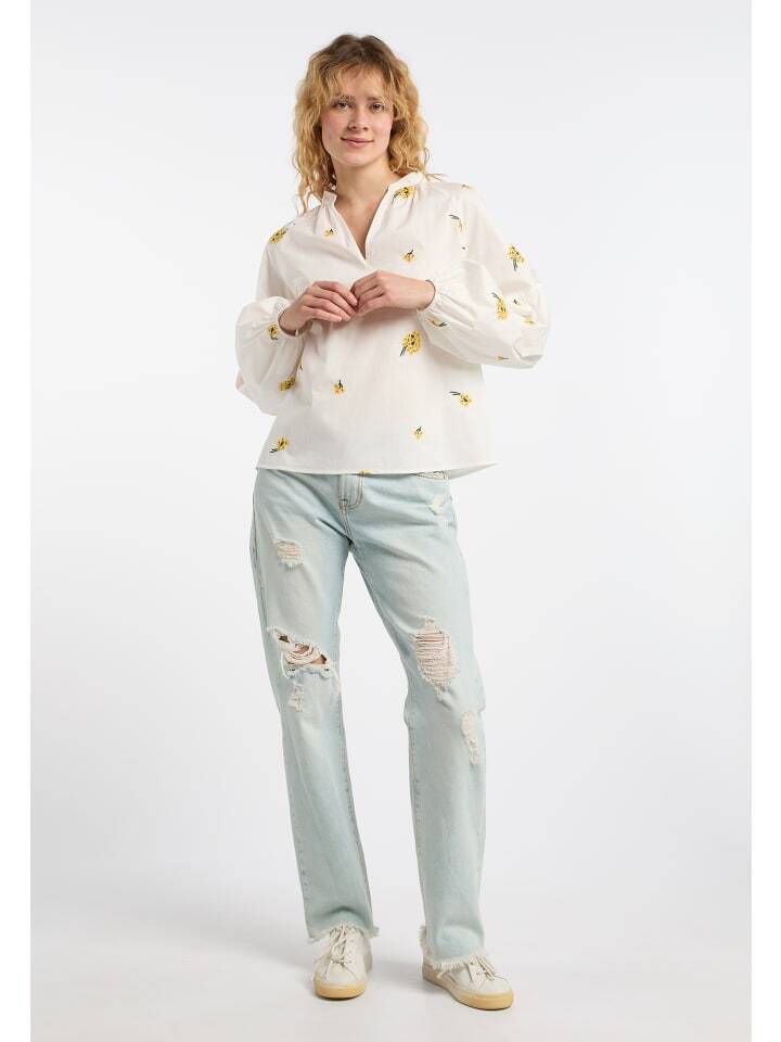 Свежий, романтический образ этой легкой хлопковой блузки модно подчеркнут нежной цветочной вышивкой. V-образный вырез, рукава-фонарики и рукава реглан создают свободный образ. Винтажная туника DreiMaster благодаря свободному крою удобна в ношении.