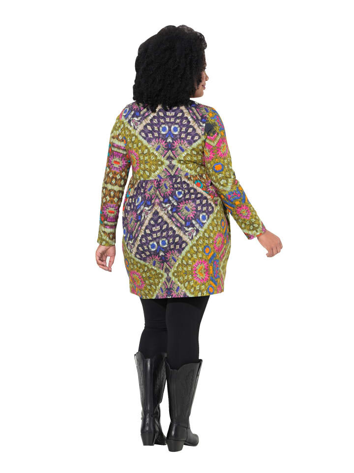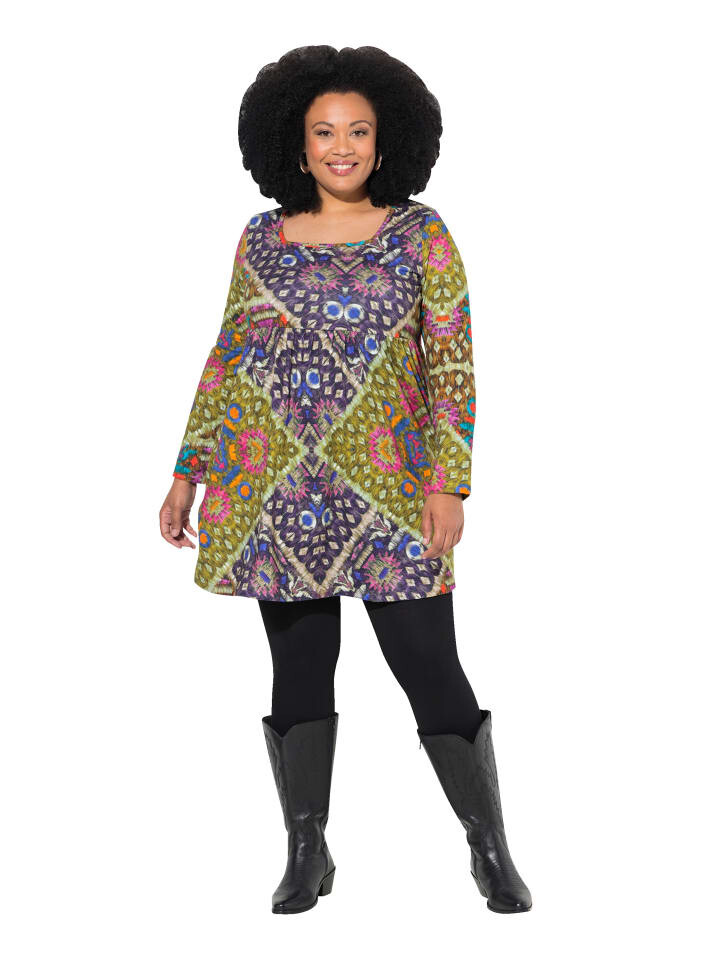Длинная рубашка А-силуэта из чистого хлопка с графическим рисунком. Квадратный вырез горловины, эластичный шов под грудью, длинные рукава. Удобная ширина низа. Внешний материал: 100% хлопок.