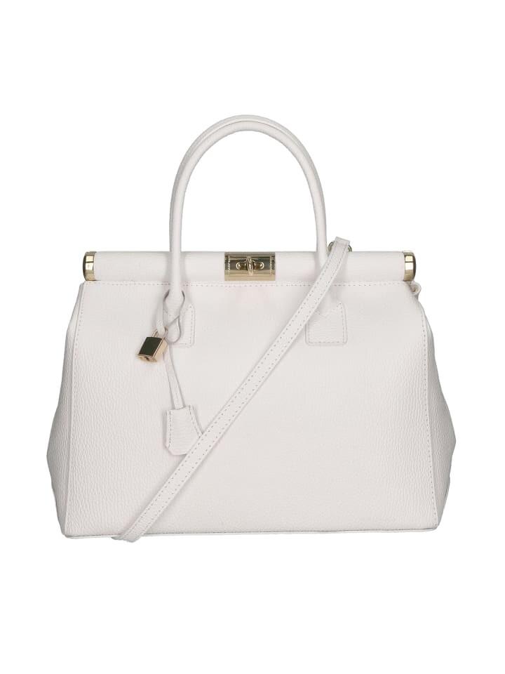 Женская сумочка с поворотным замком. два внутренних кармана на молнии и два открытых внутренних кармана. отсутствуют внешние карманы. регулируемый и съемный кожаный плечевой ремень. Кожаная ручка. два внутренних отделения. СумочкаВнешний женский материал, подкладка 70% хлопок, внутри 30% полиэстер. Размеры: 35х26х16 см. Сделано в Италии 35x26x16 см