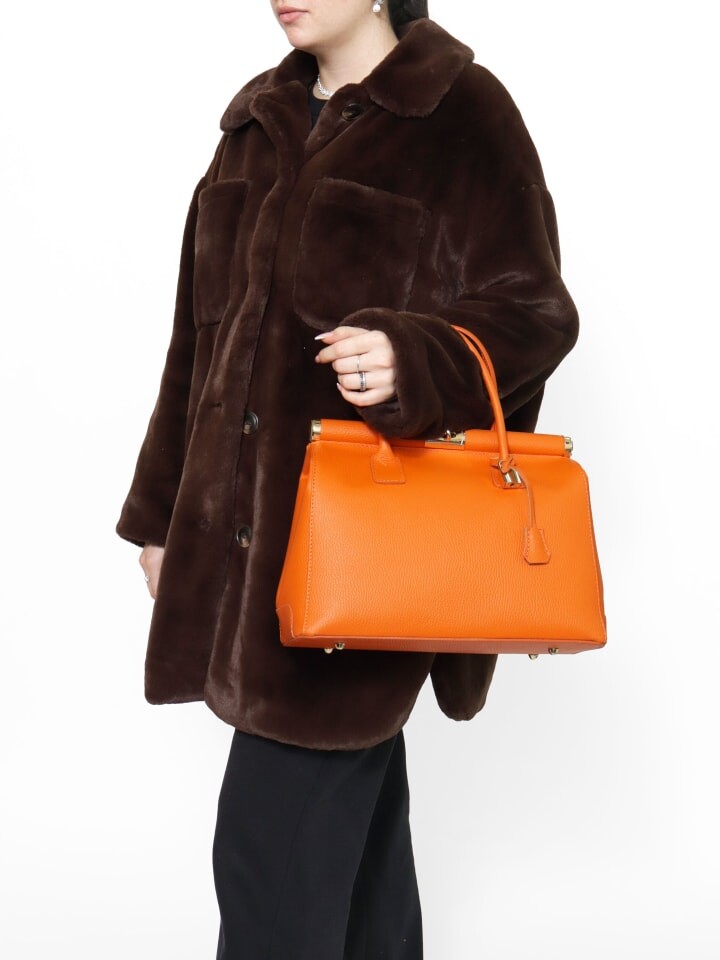 Женская сумочка с поворотным замком. два внутренних кармана на молнии и два открытых внутренних кармана. отсутствуют внешние карманы. регулируемый и съемный кожаный плечевой ремень. Кожаная ручка. два внутренних отделения. СумочкаВнешний женский материал, подкладка 70% хлопок, внутри 30% полиэстер. Размеры: 35х26х16 см. Сделано в Италии 35x26x16 см
