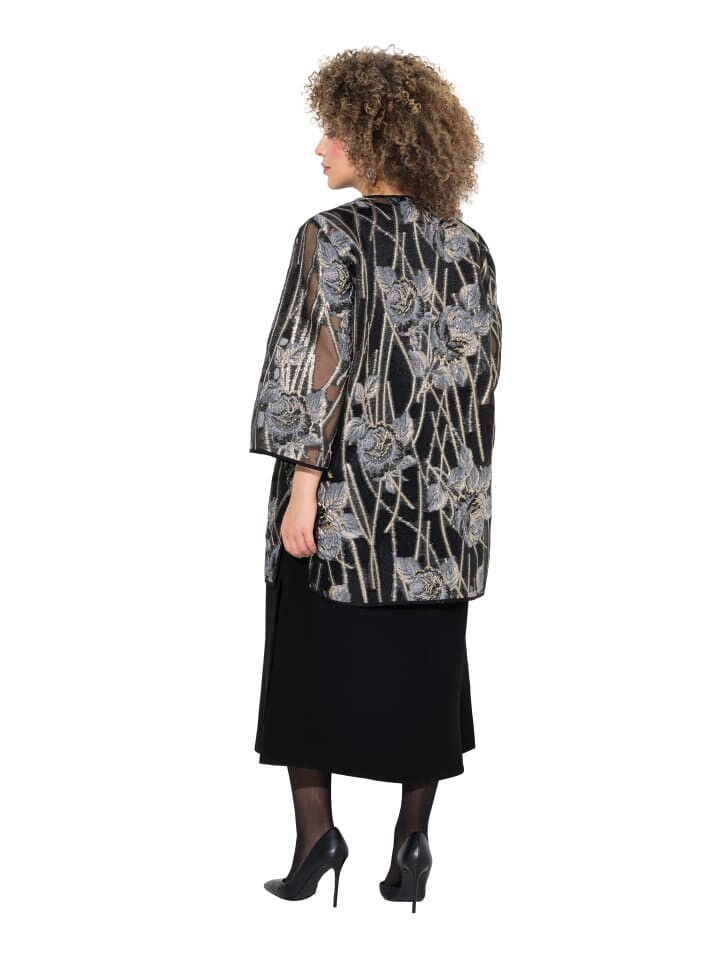 Кружевной жакет классического кроя, выполнен из прозрачного кружева. Открытая куртка с V-образным вырезом и рукавами 3/4.