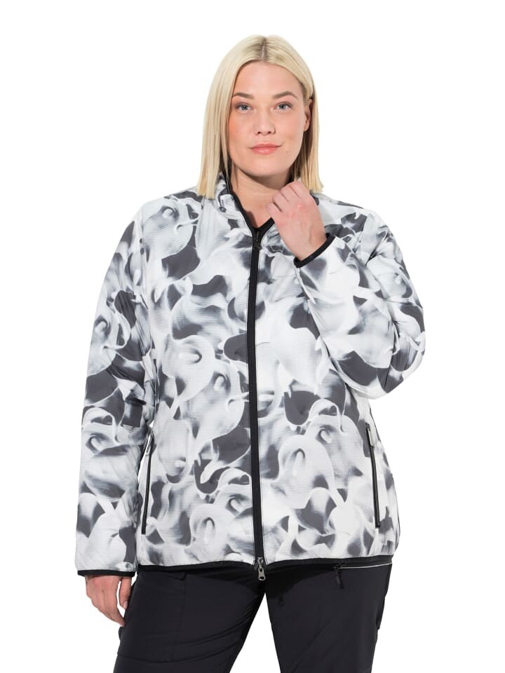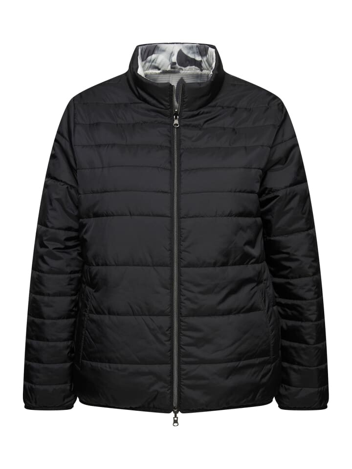 Двусторонняя функциональная куртка с мерцающей стеганой стороной и стороной с принтом. Водонепроницаемый благодаря покрытию без фтора, ветроотталкивающий, дышащий. Согревающая набивка из технопуха, изготовленного из переработанных материалов. Мягкий воротник-стойка, двусторонняя молния, по 2 кармана на каждом. Длинные рукава, эластичные манжеты.