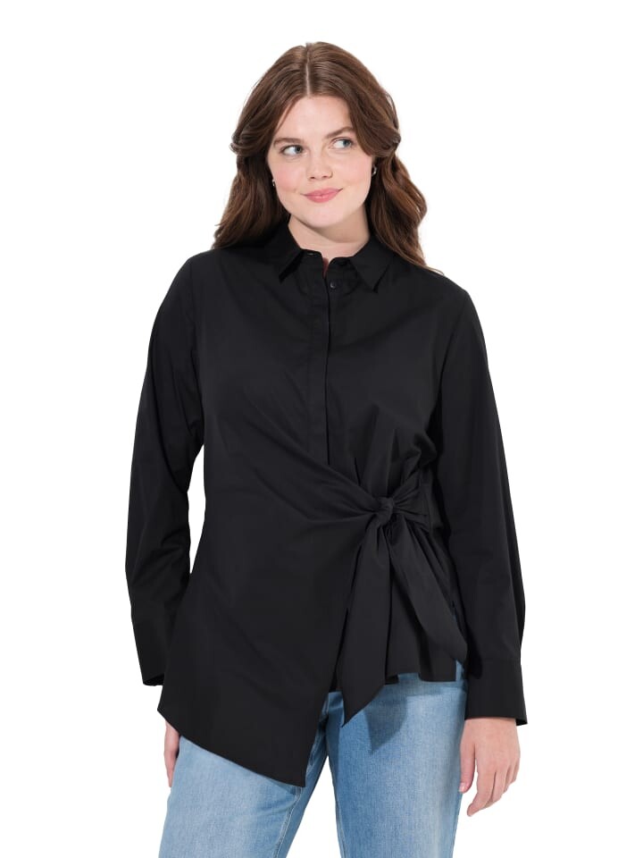 Блузка из натурального хлопка с драпировкой и завязкой на талии – всегда ваш желаемый силуэт. Классический крой с рубашечным воротником и планкой на потайных пуговицах. Длинные рукава с манжетами. Органический; сертифицировано лицензией ECOCERT Greenlife № 152026.