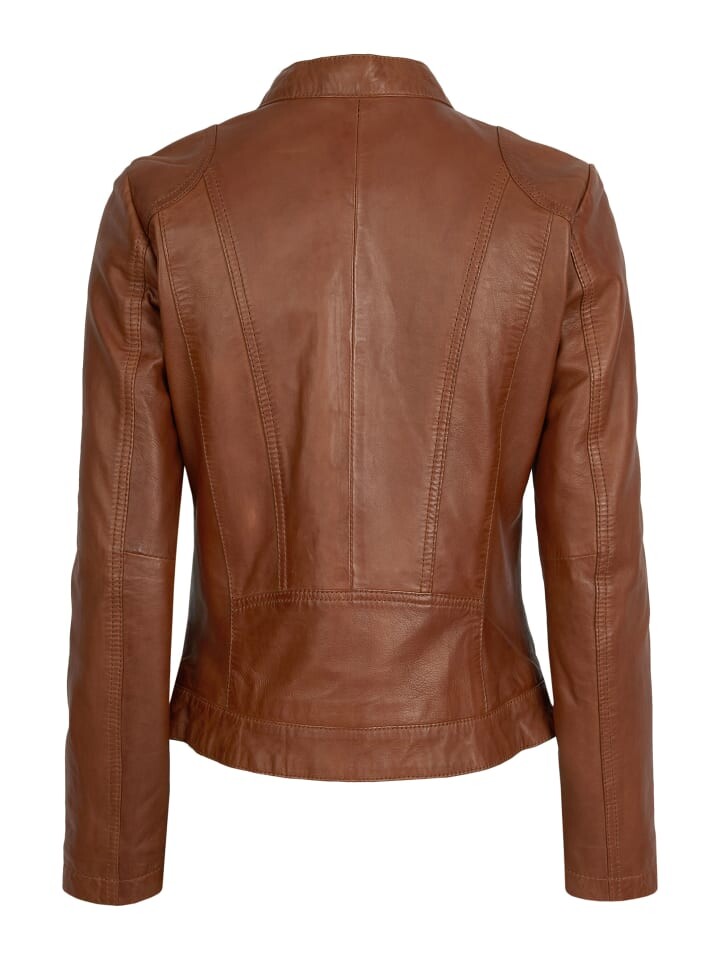 Классическая кожаная куртка из натуральной кожи с воротником стойкой и классическим кроем. Куртка имеет карманы на молнии, которые одновременно функциональны и стильны. Эта вневременная куртка сочетает в себе высококачественный материал, традиционный дизайн и практичные детали, создавая элегантный образ.