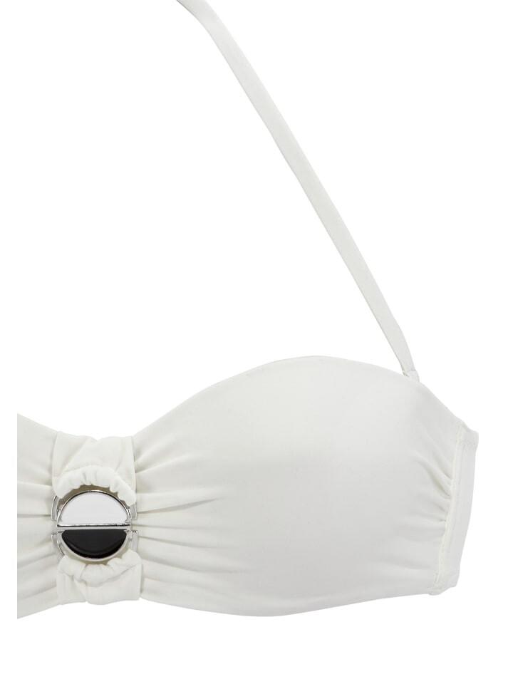 Элегантное бикини-бандо на косточках от Jette, созданное дизайнером Jette Joop. Бюстье с центральным декоративным декором, мягкими чашками и съемными подушками. Классические плавки бикини. Приятная эластичность.