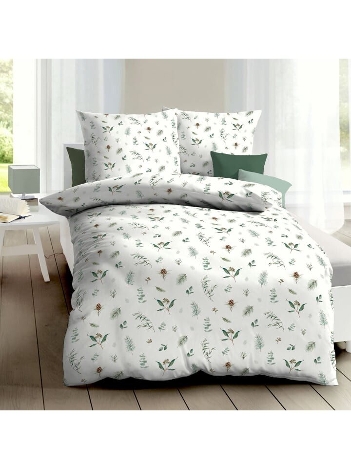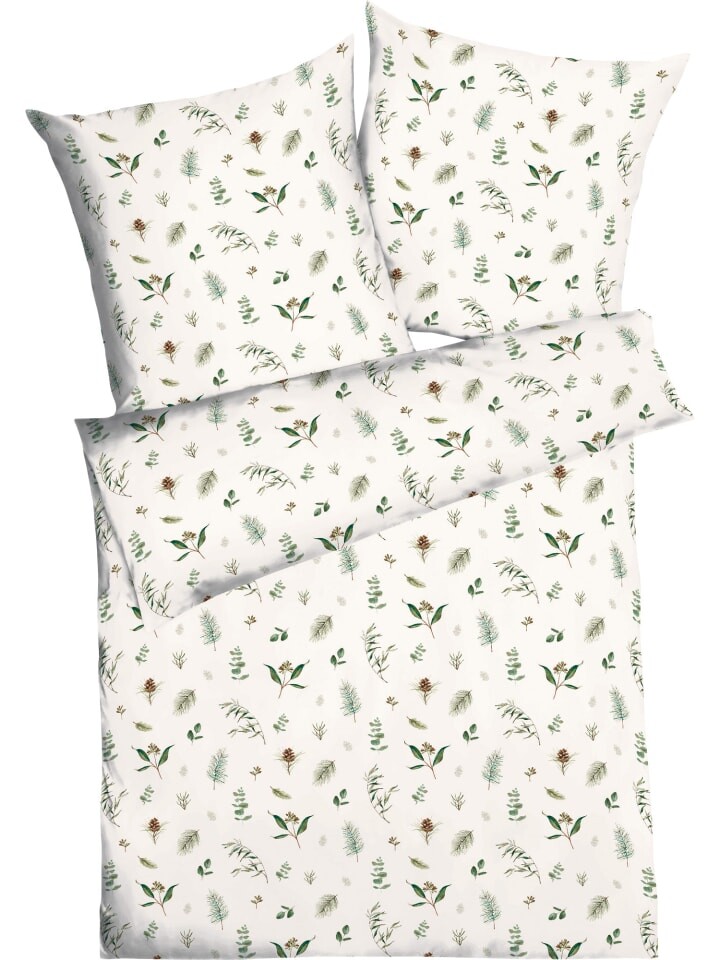 Прекрасное льняное постельное белье Kaeppel «Зимняя зелень». Ветки и шишки привносят свежую зелень в обстановку вашего зимнего сна. Мягкая ткань из чистого хлопка впечатляет своим качеством, она плотно сплетена и слегка шероховата. Это делает его особенно мягким, пушистым и приятным для кожи. Уютное лакомство, которое побалует вас уютным теплом прохладными ночами. Легко гладить, дышит, поддерживает баланс температуры и влажности. Экономичная застежка-молния существенно облегчает надевание.