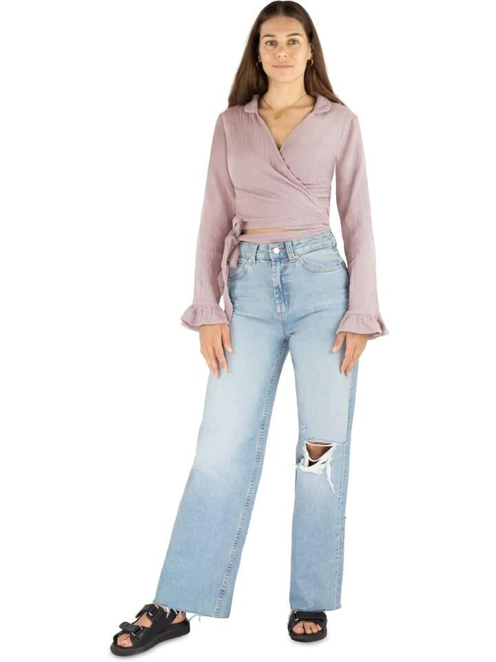 • Летняя блузка с воротником, функцией запахивания и длинные рукава
