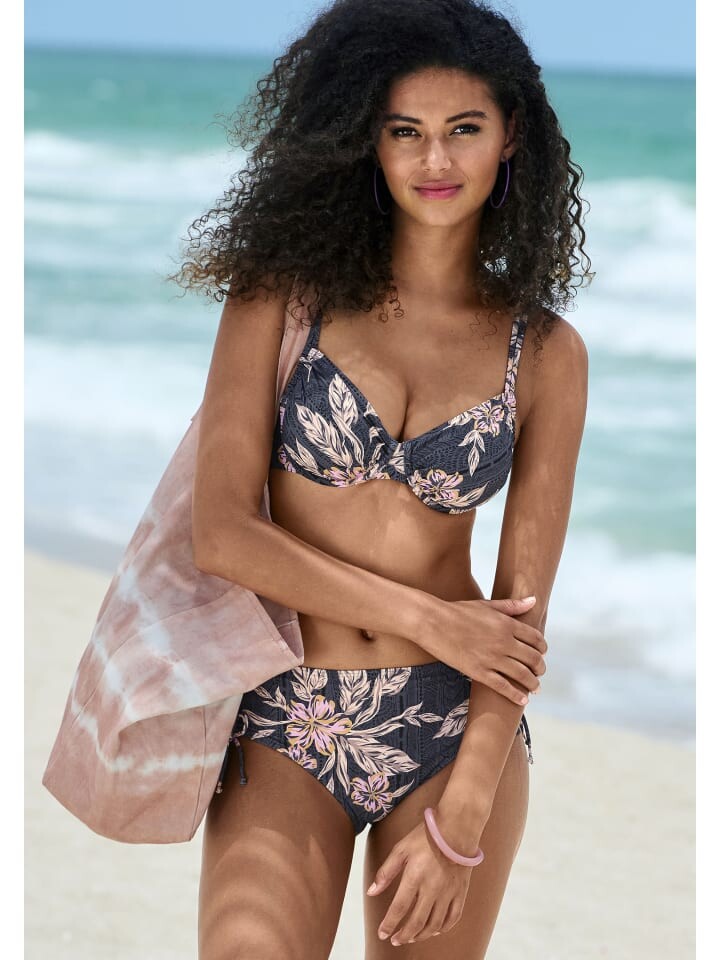 Великолепное бикини на косточках от Sunseeker с цветочным принтом. Топ на регулируемых бретелях и съемных мягких чашках. Завышенные трусики с завязками по бокам. Мягкое качество из микрофибры.