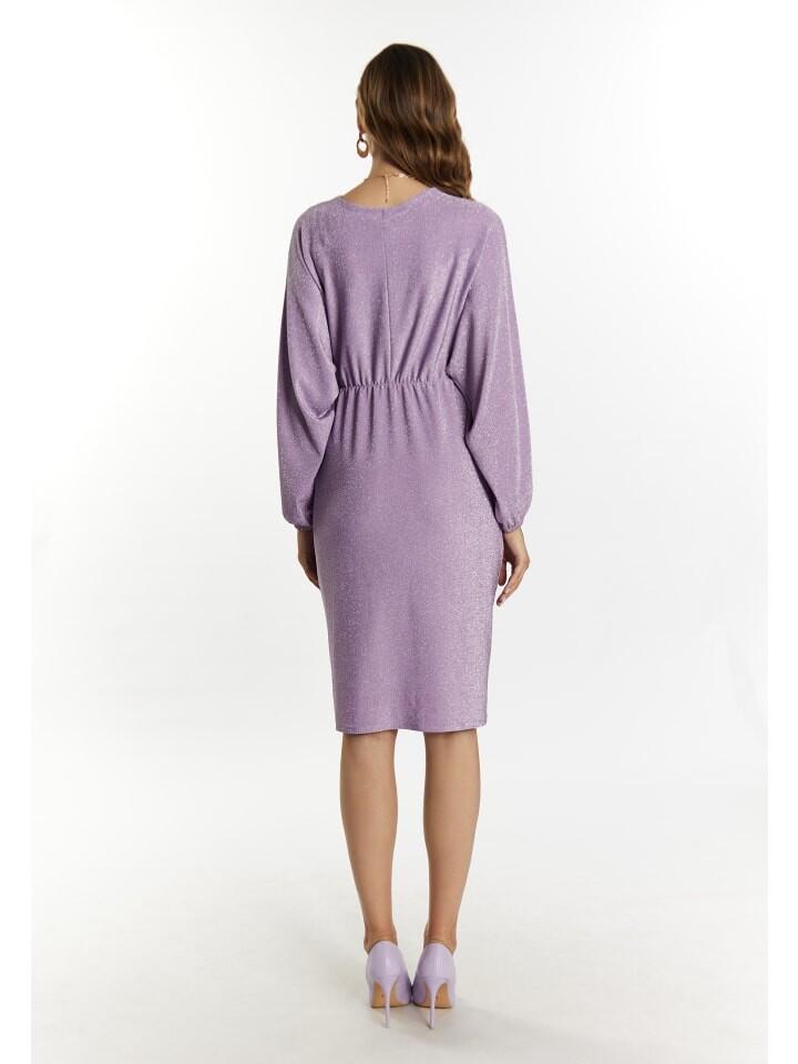 Для следующей вечеринки выбираем это платье миди от Faina. Модель выполнена в Италии из блестящего металлизированного джерси, имеет лиф с запахом и V-образный вырез. Благодаря эластичному поясу модель прилегает, а драпированная юбка имеет гламурные струящиеся волны. Сочетайте его с высокими сандалиями.