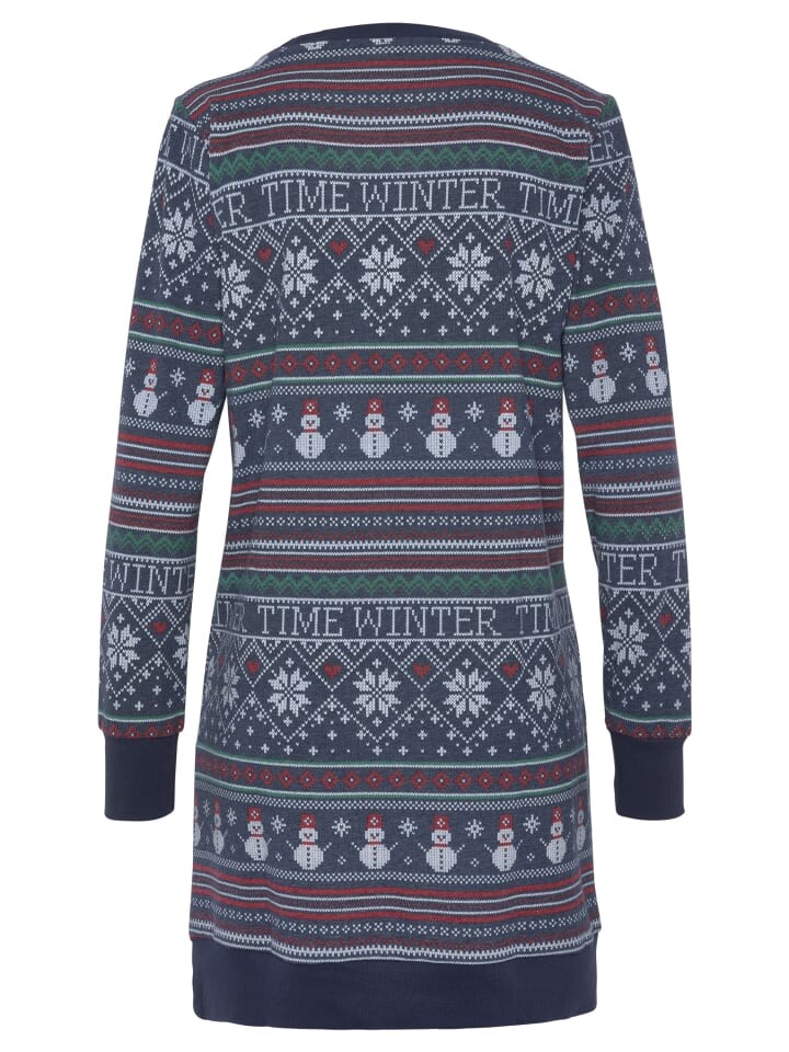 Зимняя ночная рубашка с красивым принтом по всей поверхности и контрастными манжетами из приятного смесового хлопка.