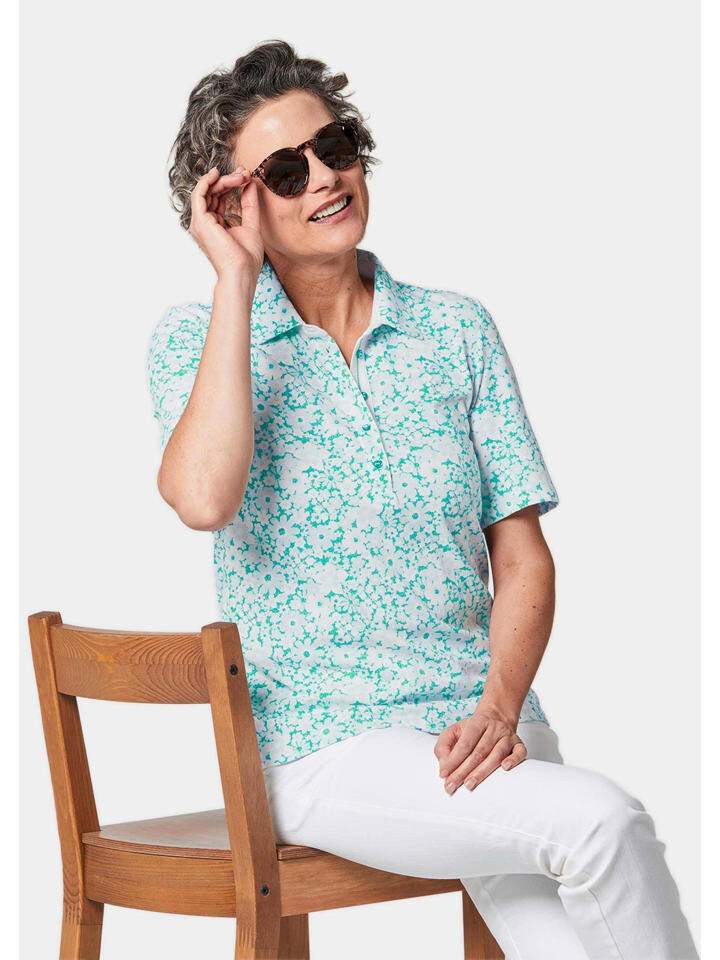 Рубашка-поло с принтом, рукавами средней длины и тонкой структурой пике. Чистый хлопок обладает дышащими свойствами и стабильностью размеров и, следовательно, гарантирует высочайший уровень комфорта. Модный цветочный принт, который делает каждую рубашку уникальной. Классический воротник-поло на пуговицах с белой тесьмой и подкладкой. Элегантная, спортивная базовая модель, которая также является незаменимой в этом сезоне. Длина около 66 см по размеру. 46, размер около 62 см. 23.